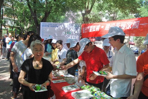 活动开始前,青年代表与蓟门里社区委员会的代表进行了座谈,对节能环保服务以及节能环保团队建设献言献策。活动中,他们边向社区居民普及环保知识,边向大家发放节能灯泡、环保手提袋及再生笔等用品和宣传材料,引导大家从家庭做起,从自身做起,从身边的点滴小事做起,树立文明、健康的家庭生活新理念,形成节能、环保的家庭消费新模式,引导大家积极投身到节能减排的全民行动中来。一天的活动结束后,所有的青年代表都感到获益良多。