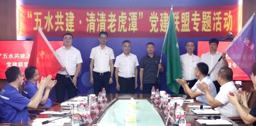 6月29日,湖州中环党总支和湖州市水利局直属机关党委、吴兴区埭溪镇党委、德清县莫干山镇党委正式签约共建湖州市首个护水党建联盟——“五水共建·清清老虎潭”党建联盟。