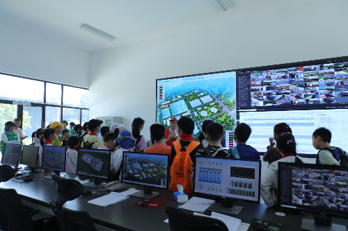 同学们在志愿者老师的带领下,通过中控室显示屏了解生活中的污水如何通过污水管网到达污水处理厂,以及在污水处理厂进行科学清洁的全过程。在设备现场,同学们观看了污水经过一道道工艺,逐步被清洁的过程。通过生动有趣的现场教学,孩子们逐渐增强了环保节水意识。