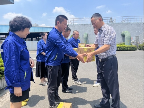 公司领导为一线职工送去冰红茶、脉动、花露水、藿香正气水、风油精等多种防暑降温物品,叮嘱大家要提高夏日防暑意识、注重劳逸结合、做好自我防护。 吕见昊强调,各水厂要配备充足的清凉油、六神丸、人丹等防暑药品,做好员工高温防中暑应急准备;食堂要在保证饮食新鲜、营养的前提下,努力做到菜品多样化,不间断提供一些粥类、汤类等易消化且快速补充电解质的食物,充分满足高温期间员工的营养需求。 “烈日炎炎送清凉,亲切关怀润人心。”职工们纷纷表达对公司领导关怀的感谢,表示将努力做好个人劳动保护,尽职尽责确保企业生产安全、有序运行。