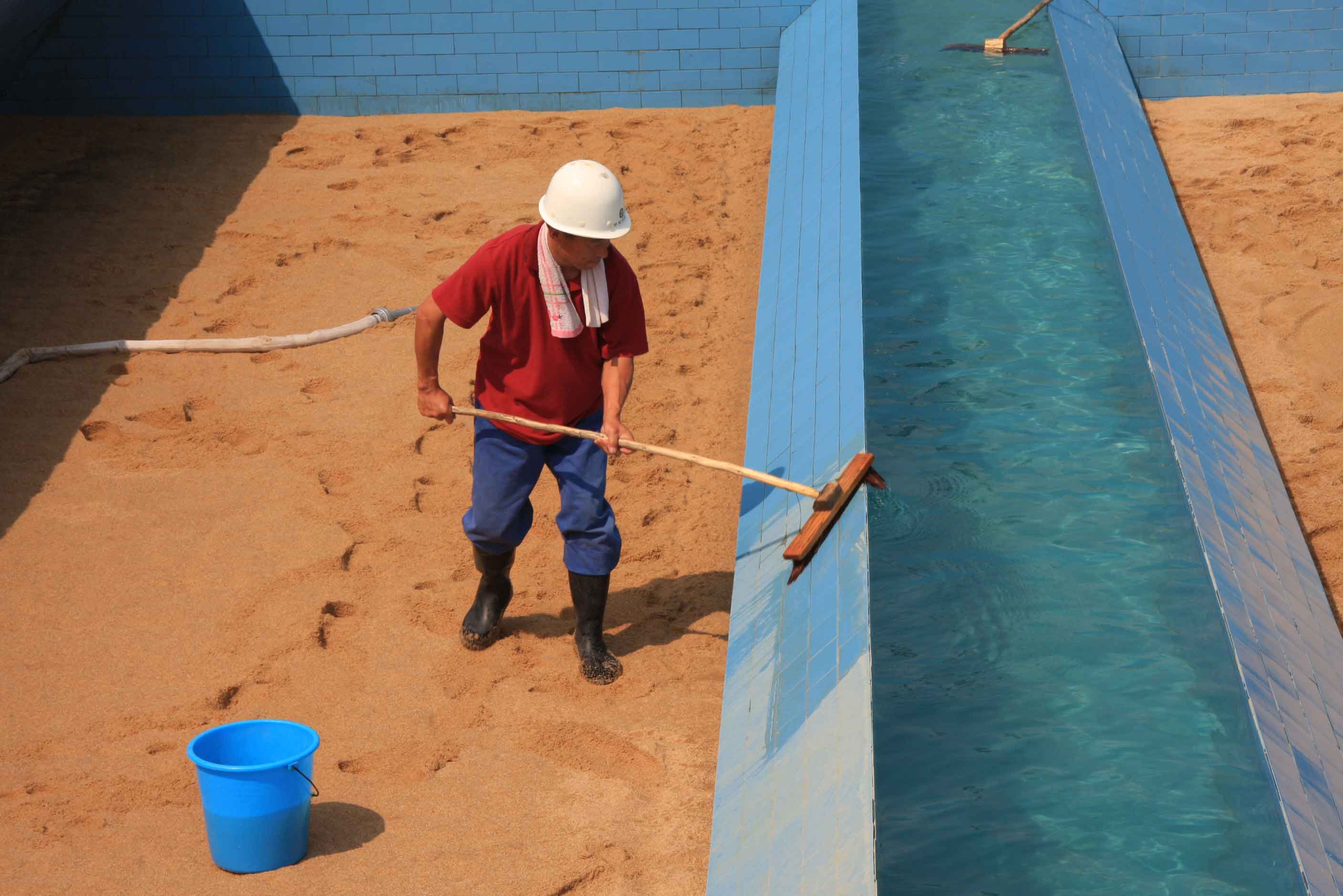 首先由厂长秦志林做了简短部署和分工后,员工们全心全意以饱满的精神投入到清洗滤池的工作中去了。参战员工兵分两路,一部分人员在滤池上面传递工具,一部分人员下池负责清理污泥。员工们干劲十足,把相关工作安排得有条不紊,每一个步骤都做得认真细致。此次清洗正是咸阳最热的时节,员工们不怕苦、不怕累冒着夏日的炎热,除泥、刮泥、抽水、清洗,配合默契,干得热火朝天,浑身被汗水浸湿却全然不顾。