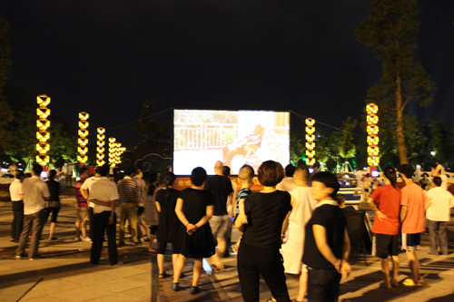 (温州正源讯)温州中环正源水务有限公司团支部的志愿者协助温州市鹿城区环保局相关工作人员在公园内为广大市民播放露天电影。