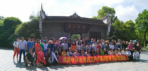 活动的第一站是一代伟人毛泽东的母校——东山学校。刚一下车,大家都争相与毛主席曾经用过的书桌合影留念,共同感受伟人曾经的学习环境和东山学校的校训——“公诚勤俭”中涵盖的人生哲理。参观完毕后,大家徒步攀登东台山,一路上互相加油鼓劲,共同享受登山的乐趣和登高远眺带来的感悟。下山后,大家驱车赶到水府庙时已是正午时分,公司工会早已为本月过生日的员工送上了精心准备的礼物和生日大蛋糕。百人同唱生日歌,现场充满了温暖和欢乐的气氛。