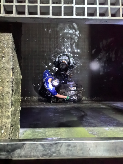 此时,时间已至凌晨1点,在排空阀门井内污水,做好安全措施后,焊工迅速就位开始补焊。历经7个小时的连续奋战,4月26日7时,管道封板破损处顺利完成焊接,通水试机确保焊接处滴水不漏后,于4月26日7时30分转入正常运行。全员有序、高效的应急响应,保障了这场和时间赛跑的“抢修战”的胜利。